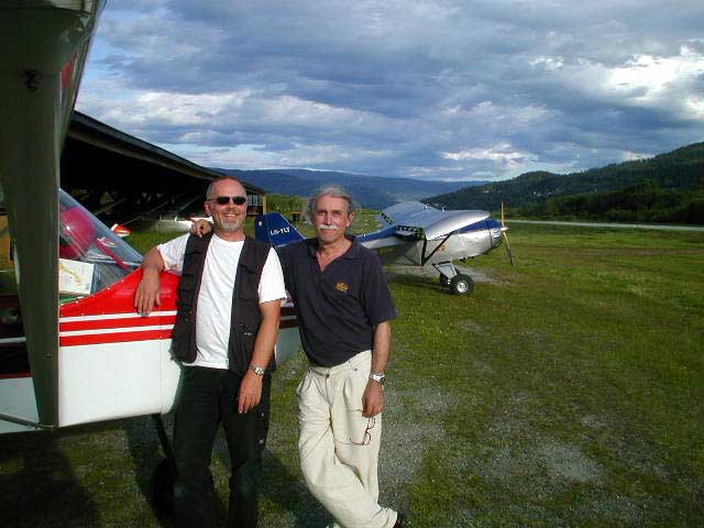 Soon Notodden appears at the end of Heidalsvann lake. My instructor and Johnny were preceding me by ten minutes in their Rans 6. After a nice landing, Per Halvor takes a picture of Johnny and me - two students, soon microlight pilots! |