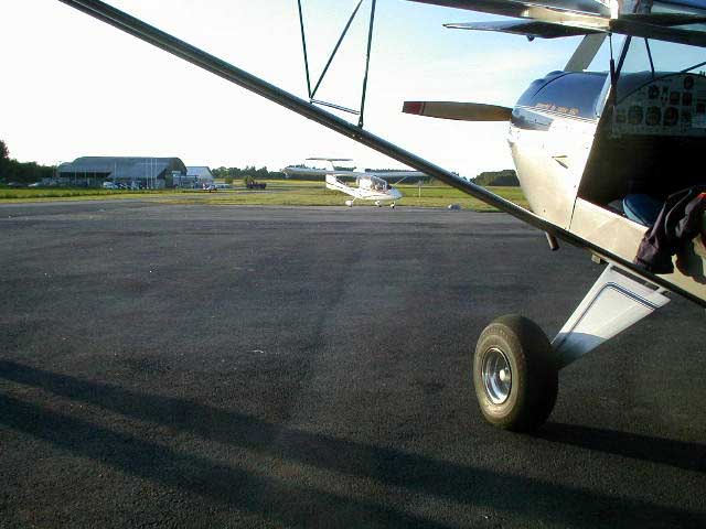 Back to Jarlsberg. There is Odd-Tore and his Sky Arrow. He was my first instructor and I liked very much flying his 'Italian lady.' Although it is nearly 10 PM, gliders are still in activity. A very nice evening after a beautiful navigation training trip. |