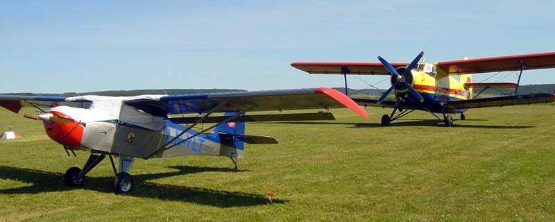 | ... And some are bigger. Here is the world's largest one-engine aircraft, the Antonov AN-2. ... no, it is not snow on my plane, it's a light nylon cover to keep the heat out of the cockpit. |