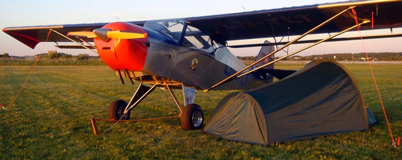 | Varberg is on the Swedish coast, about two hours flight from Norway. Here, I am ready for the night with good tie down in a 22 knots wind. |