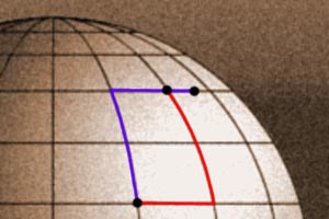 By convention, a degree of latitude is divided into 60 minutes, or nautical miles. This mile varied widely and the Roman mile was quite inaccurate, leading Columbus to the assumption that Japan was about 4,000 Miles west of the Canary Islands. In the 15th century, Portuguese navigators, sailing to the Azores and Cape Verde Islands discovered an interesting fact: If you sail say, 100 NM to the north, then the same distance to the east, you will not arrive at the same place as if you had sailed first 100 NM east, then north! |