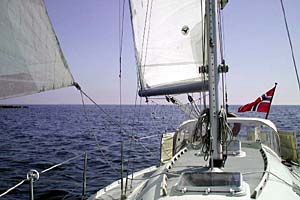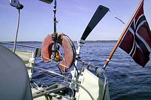 | So, we crossed the fjord with a nice South Westerly force 2 to 3. Marie keeps us on a steady course to Slevik, on the other side of the fjord. |