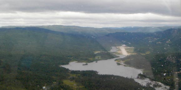 Since I have a transponder it was much easier to cross the airspaces south of Oslo. Here, we fly in formation toward Dagali in the middle of the Norwegian mountains. Comme j'ai un transpondeur, ce fut beaucoup plus facile de traverser les espaces aériens au sud d'Oslo. Ici, nous volons en formation vers Dagali au milieu de plateau central norvégien.