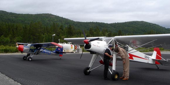 As I don't enjoy much bus rides, I decide to come and fetch Thor with my Kitfox on Wednesday, together with Hermod, who will fly the Storch to Norway. Comme je n'apprécie pas les voyages en bus, je décida de venir avec mon Kitfox et Hermod, qui pilotera le Storch jusqu'en Norvège.